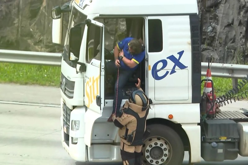 O condutor do caminhão informou ter sido vítima de assalto seguido de sequestro e desmaiou ao ser resgatado por um agente do Grupo de Ações Táticas Especiais (Gate) da Polícia Militar. Ele passou quatro horas amarrado ao lado do suposto artefato. Segundo a polícia, os criminosos atiraram uma pedra no veículo para abordá-lo.