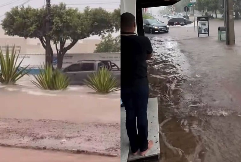 Imagens gravadas por moradores mostram ruas tomadas pelo alagamento. Em alguns registros, carros aparecem parcialmente submersos, e trechos ficam completamente interditados pela quantidade de água acumulada.