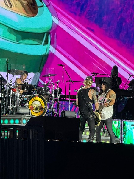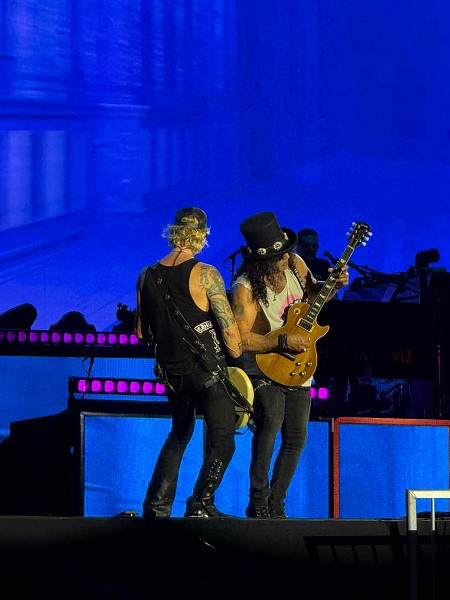 O vocalista Axl Rose, de 63 anos, surpreendeu o público pela energia e boa forma, contrariando boatos de que estaria com problemas na voz. Ele correu e pulou pelo palco sem nenhum intervalo. Já o guitarrista Slash, de 60 anos, também encantou os fãs com solos e muito vigor, assim como o guritarrista Izzi Stradlin, o baixista Duff McKagan e os demais músicos.