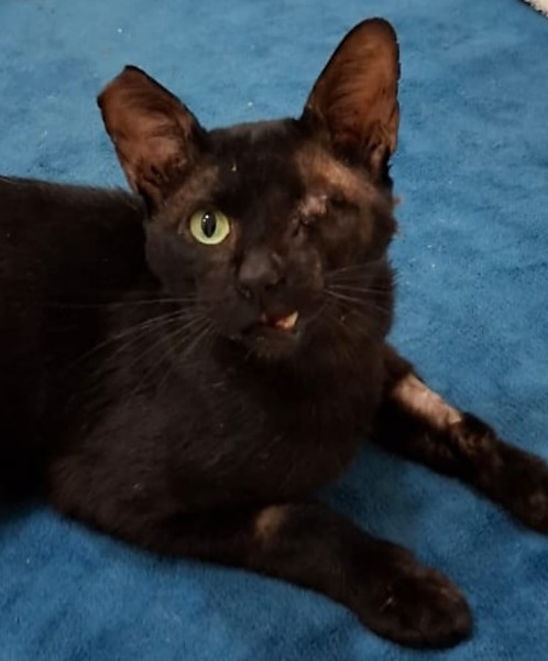 Segundo os cuidadores, o animal foi encontrado no dia 5 deste mês, gravemente ferido, com sinais de espancamento. O felino foi socorrido por uma veterinária.