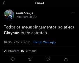“Todos os meus xingamentos contra o Clayson eram corretos”.