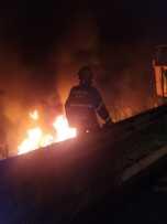 A cabine da carreta estava fora da pista e pegando fogo. Os socorristas conseguiram controlar as chamas rapidamente.