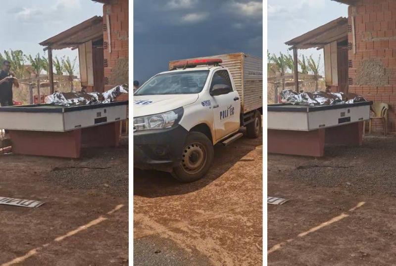 Imagens do local do crime mostram o corpo sobre uma mesa de sinuca, já coberto após o trabalho da Perícia Oficial e Identificação Técnica (Politec).