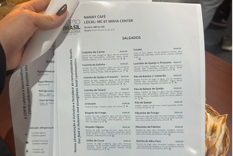 Na COP30, o clima é de sustentabilidade, menos no bolso. Segundo a CNN Brasil, uma simples água de 350 mL sai por R$ 25, e a coxinha de frango, por R$ 45, nas lanchonetes da blue zone em Belém (PA). Até o brigadeiro entrou na onda e custa R$ 20.
