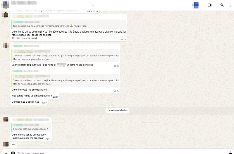 Um ex-diretor da Unimed Cuiaba, até na tampa de processos por conta do rombo de R$ 400 milhões na cooperativa, e um conhecido advogado de Cuiabá trocaram insultos e acusações em um grupo de Whats App do condomínio onde vivem. "Você não é homem"; "Não tenho medo de ameaças"; "Resolva seu caso na Unimed"; "O senhor ja atirou de fuzil"? Essas são apenas algumas das ameaças e insultos proferidos. O barraco foi tão áspero entre os dois "santos" que o administrador apagou as conversas. A coluna, porém, obteve os prints antes que eles sumissem. Que feio, doutores!