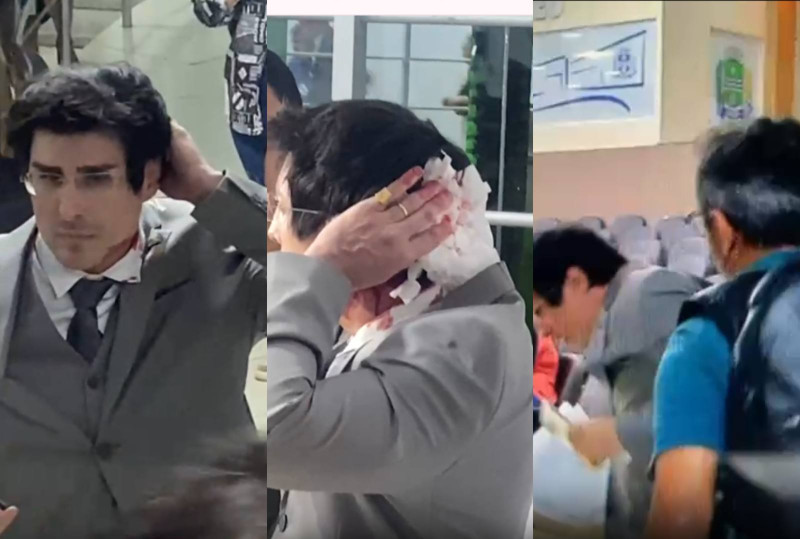 Vídeos mostram o parlamentar com a parte de trás da cabeça sangrando e os cortes.