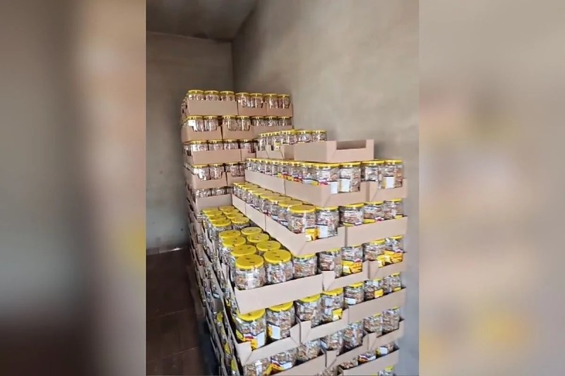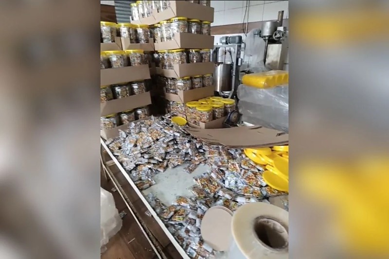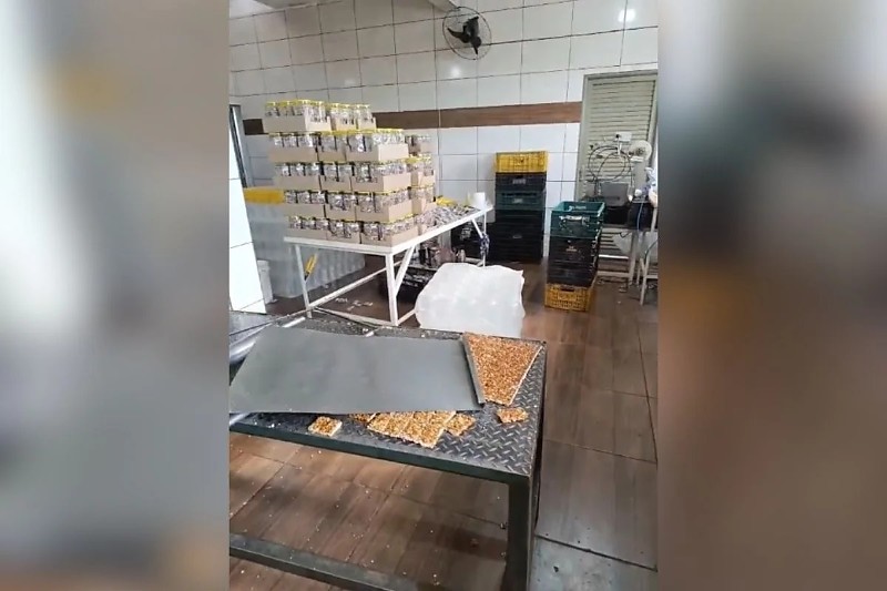Nesta terça-feira, os agentes identificaram uma van descarregando no local e realizaram a abordagem. No endereço, eles identificaram uma estrutura industrial para fabricar e envasar doces de amendoim disponibilizados para venda.