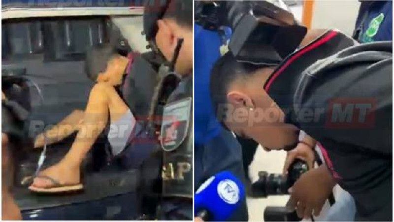 Vídeo mostra o momento em que Victor Hugo Oliveira da Silva, de 21 anos, apontado como piloto da moto usada no assassinato da personal trainer Rozeli da Costa Sousa Nunes, chega à sede da Delegacia de Homicídios e Proteção à Pessoa (DHPP), em Cuiabá, na noite desta terça-feira (30). Ele foi conduzido em uma viatura da Polícia Rodoviária Federal (PRF), após ser preso em um posto de fiscalização na BR-070, enquanto tentava fugir para Cáceres.