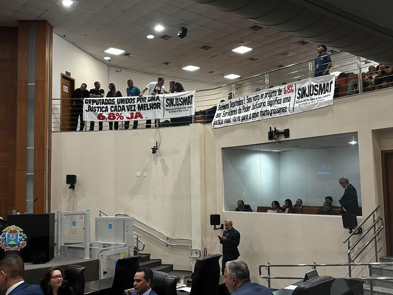 Representantes dos servidores, assim como o presidente do Sindicato dos Servidores do Poder Judiciário (Sinjusmat), Rosenwal Rodrigues, compareceram à sessão de hoje (12) para pressionar os deputados pela aprovação do projeto.