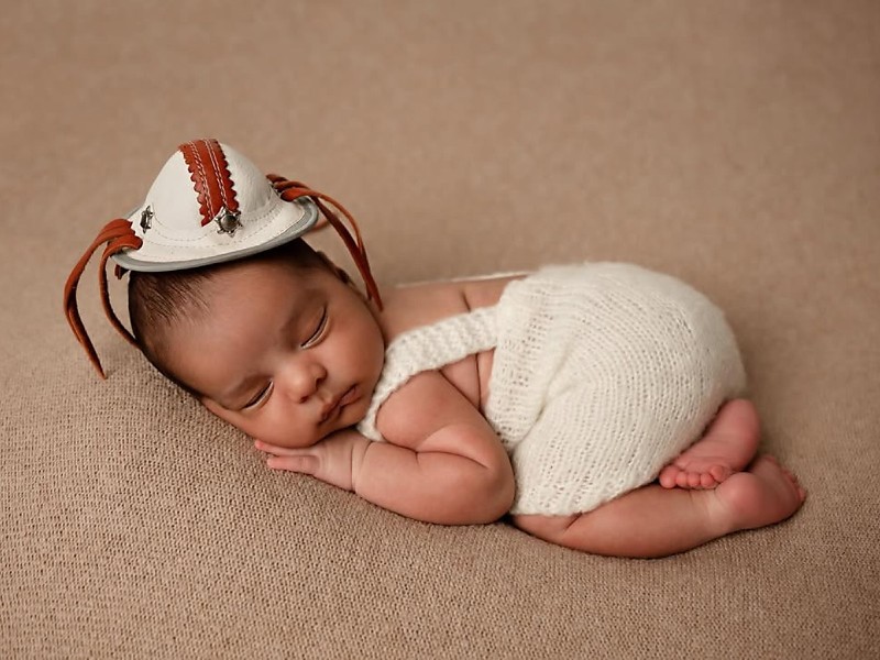 O carrossel de fotos começou com uma foto do herdeiro com o chapéu de couro vaqueiro, naquelas famosas poses que a criança parece um pacotinho. Os registros seguiram com ele sem o chapéu, entre outras “poses”.