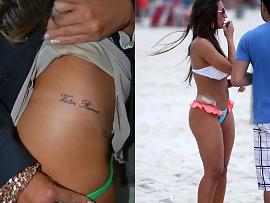 Nicole Bahls também está nessa lista: a artista escreveu o nome do ex Victor Ramos na lateral da cintura, mas removeu por completo a escrita após o fim da relação, que durou de 2011 a 2011.