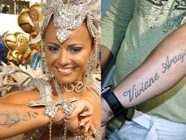 Do pagode às telinhas da Globo: O ex-casal Belo e Viviane viveram uma relação intensa até chegar ao fim em 2007. O cantor possuía o nome “Viviane Araujo” tatuado no antebraço, enquanto a rainha de bateria o nome do artista no braço direito. O pagodeiro cobriu a escrita com uma flor tribal, enquanto a atriz optou por fazer a remoção a laser.