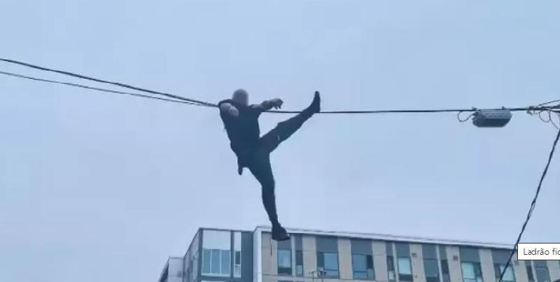 Parece até cena de filme de ação, mas aconteceu de verdade. No último sábado, 23, um homem acabou preso em fios telefônicos ao tentar fugir da polícia no Estado de Washington, nos Estados Unidos. Ao ser pego arrombando um carro, o ladrão ficou tão nervoso durante a fuga que achou que seria uma boa ideia subir nos fios. Antes de conseguir a proeza de ficar preso a 6 metros do chão, o homem identificado como Romando E. Stanley protagonizou uma verdadeira saga. Quando a polícia o viu arrombando um carro em um estacionamento da cidade, ele não teve dúvidas em correr do flagrante.