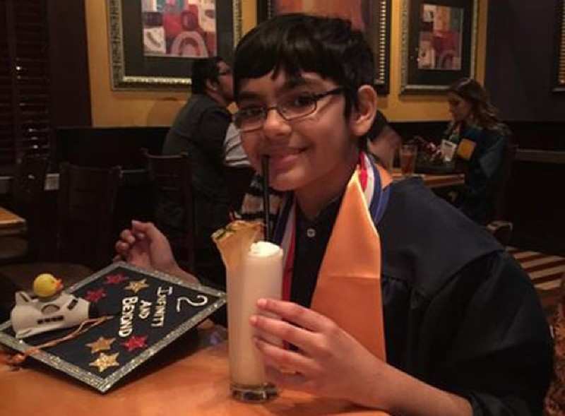Ele terminou o ensino médio em junho do ano passado, com apenas 10 anos. E esse ano fez a prova oficial da Califórnia para pessoas que concluem os estudos mais cedo que o previsto e foi aprovado. Ele ainda recebeu uma mensagem de parabéns do presidente Barack Obama e de diferentes autoridades da Califórnia.